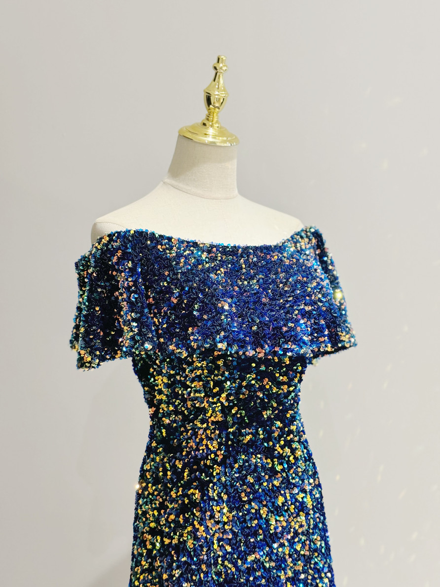 The Aurora Gleam Gown is a true showstopper — bold, radiant, and unapologetically glamorous. Covered in mesmerizing multi-colored sequins that shimmer like the Northern Lights, this off-the-shoulder silhouette combines playful elegance with red-carpet drama.