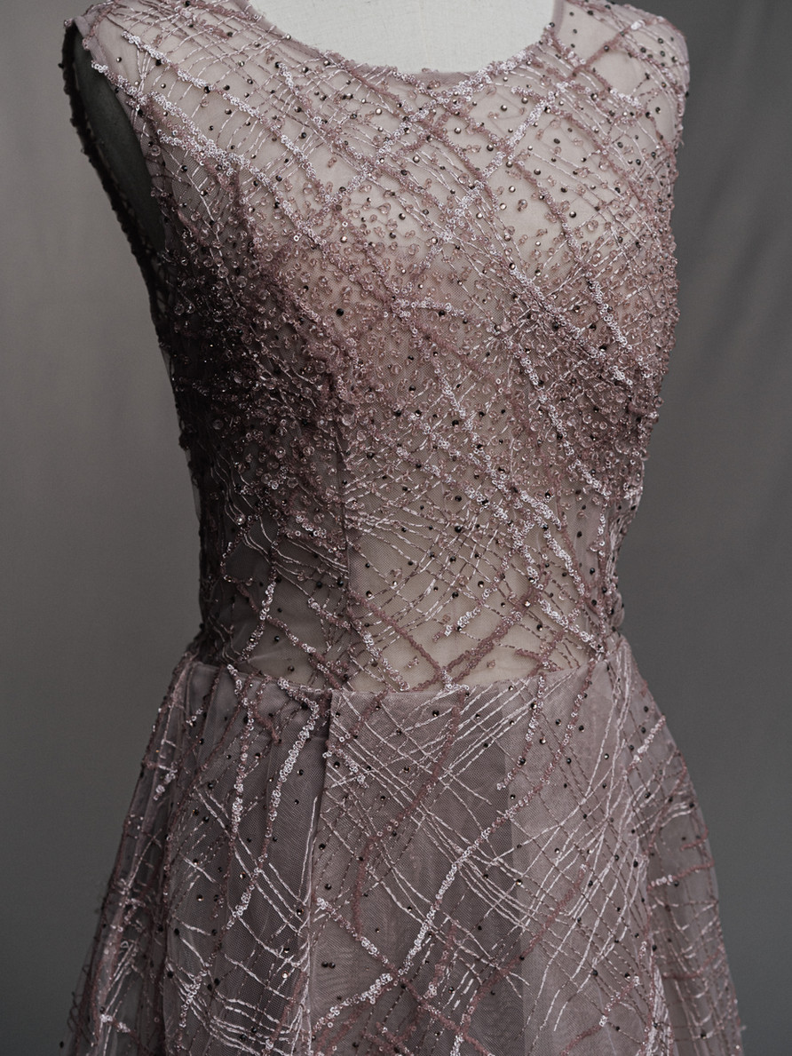Fabric: Tulle with hand-beaded embroidery and sequin detailing